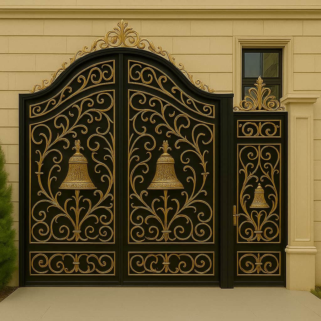 درب مدل زنگوله با طرح فرفورژه سنتی, نمونه ای چشمگیر از ترکیب هنر فلزکاری ایرانی و فناوری مدرن است. در این مدل, نقش زنگوله ای در مرکز درب با ظرافت خاصی اجرا می شود و اطراف آن را خطوط منحنی و تزئینات فرفورژه احاطه کرده اند. این ترکیب موجب القای حس توازن, اصالت و شکوه در نمای ورودی می شود. فرآیند تولید شامل برش دقیق فولاد با دستگاه CNC, جوشکاری صنعتی و پرداخت سطحی حرفه ای است تا درب نهایی از نظر ظاهری و فنی کاملاً بی نقص باشد. رنگ پودری الکترواستاتیک با پخت در دمای بالا موجب افزایش ماندگاری سطح می شود. در پروژه های ویلایی مدرن و سنتی, این مدل به دلیل هماهنگی با نمای سنگی و چوبی مورد توجه طراحان و سازندگان قرار گرفته است.